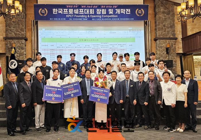 한국프로쉐프대회 결승진출쉐프 단체사진[한식일보] 세계 최초의 프로 요리 경기 대회 ‘한국프로쉐프대회(KPCT)’가 8월 2일 안성 한국조리박물관 엘림홀에서 공식 창립과 함께 성대한 개막전을 개최했다. …