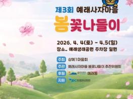 서귀포시는 생태공원을 따라 핀 분홍 벚꽃길을 걷고, 노란 유채꽃밭에서 쉬며 즐길 수 있는 제3회 예래사자마을 봄꽃나들이 행사가 4월 4일~4월 5일 주말 이틀간 예래생태공원 주차장 일원에서 개최된다고