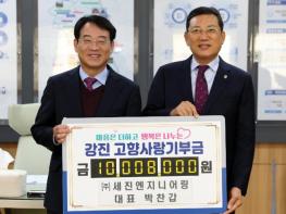강진군은 지난 2일 박찬갑 ㈜세진엔지니어링 대표가 강진을 향한 애정을 담아 고향사랑기부금 1,000만원을 기탁했다고 3일 밝혔다.전기설계, 신재생에너지장치 제조업체인 ㈜세진엔지니어링의 박찬갑 대표는