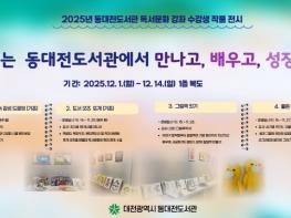 동대전도서관은 1일부터 14일까지 1층 복도에서 2025년 한 해 동안 운영한 다양한 독서문화 강좌 성과를 지역 주민과 함께 나누기 위해 ‘우리는 동대전도서관에서 만나서 배우고 성장했다 展’을 진행하고