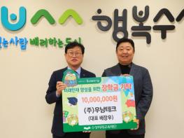 ㈜우남테크(대표 배장우)는 지난 18일 미래인재 육성과 지역 교육경쟁력 강화를 위해 장학후원금 1천만 원을 수성미래교육재단(이사장 김대권)에 기탁했다.배장우 대표는 2021년과 2023년에도 각각 1천만 원