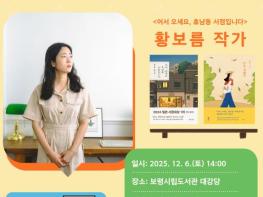 보령시는 12월 6일 오후 2시 보령시립도서관 대강당에서 보령시민을 대상으로 황보름 작가의 북콘서트를 개최한다고 밝혔다.올해 마지막으로 진행되는 이번 북콘서트에는 감성과 따뜻한 서사로 많은 사랑을