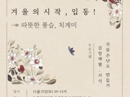 문화공간 도계는 오는 11월 22일, 겨울을 맞아 안동시 북후면 도계서원에서 '도계의 열두마당 세시이야기' 프로그램의 일환으로 ‘겨울의 시작, 입동! - 따뜻한 풍습, 치계미’ 체험행사를 개최한다.이번 행