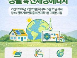 원주기후변화홍보관은 2월 25일부터 5월 31일까지 기획 전시 ‘탄소중립을 위한 생활 속의 신재생에너지’를 개최한다.이번 전시는 시민이 일상에서 접할 수 있는 태양광에너지 기술을 중심으로 탄소중립의