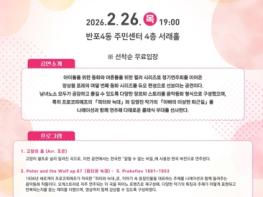 서울 서초구는 26일 오후 7시, 반포4동주민센터 4층 서래아트홀에서 2월 서래음악회 ‘앙상블 포레 DUO의 함께 듣는 음악동화‘를 개최한다고 밝혔다.반포4동 주민자치위원회가 주최하는 이번 행사는 피아노