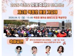 임실군의 대표관광지 옥정호의 수려한 봄 경관을 배경으로 한 ‘제2회 붕어섬 벚꽃가요제’가 화려하게 펼쳐진다. 이번 가요제는 벚꽃이 만개한 옥정호 붕어섬에서 열리는 “2026 옥정호 벚꽃축제”의 대미
