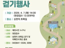 제천시는 오는 4월 7일 삼한의 초록길 일원에서 ‘한마음 치매극복 걷기 행사’를 개최한다고 밝혔다.이번 행사는 치매 예방에 효과적인 걷기를 실천하며 치매에 대한 관심을 높이고 공감대를 형성하기 위해