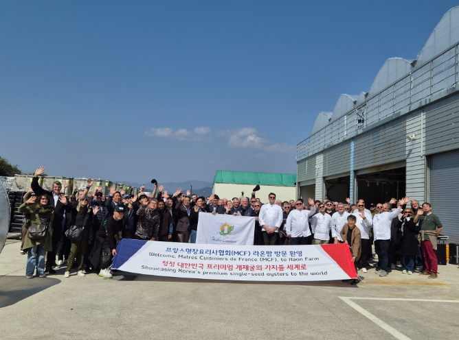 세계 최고의 미식 권위를 자랑하는 프랑스명장요리사협회(Maîtres Cuisiniers de France) 소속 셰프 180여 명을 포함한 관계자 200여 명이 2026년 3월 21일 경남 거제시의 개체굴 생산 현장인 ‘라온팜’(…