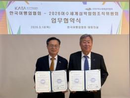 세계 최초로 ‘섬’을 주제로 열리는 2026여수세계섬박람회의 성공 개최와 관람객 유치 확대를 위해 2026여수세계섬박람회 조직위원회와 한국여행업협회가 손을 맞잡았다.(재)2026여수세계섬박람회 조직위원