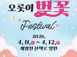 김포시가 오는 4월 11일부터 12일까지 이틀간 김포 대표 벚꽃 명소인 계양천 산책로 일원에서 ‘2026 김포 벚꽃축제’를 개최한다.이번 축제는 벚꽃을 찾는 시민과 방문객들이 여유롭게 봄을 만끽할 수 있도