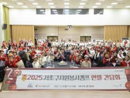 서울 서초구는 8일 구청 2층 대강당에서 ‘2025 서초구 자원봉사캠프 연말 간담회’를 열고 생활 속 봉사와 나눔의 가치를 공유하는 시간을 가졌다고 밝혔다. 서초구 자원봉사캠프는 주민들이 ‘집 가까운