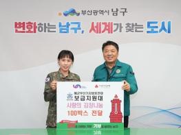 해군작전사령부 부산기지방호전대 보급지원대는 지난 12월 4일, 부산 남구(구청장 오은택)에 사랑의 김장 나눔 봉사활동 일환으로 직접 담근 김장 김치 100박스를 전달했다. 이번 사랑의 김장 나눔 봉사활동