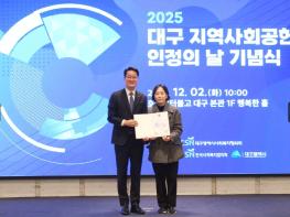 [ 대구도시개발공사는 지난 12월 2일, 보건복지부와 한국사회복지협의회가 주관하는 ‘2025년 지역사회공헌 인정제’에서 A+등급을 획득하고 보건복지부 장관상을 수상했다고 밝혔다.‘지역사회공헌 인정제