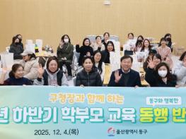 울산 동구는 12월 4일 오후 2시부터 4시까지 동구 청소년 진로지원센터 3층에서 ‘2025년 하반기 학부모 교육 동행(동구와 행복한) 반상회’를 개최했다. ‘학부모 교육 동행 반상회’는 관내 초·중·고등학