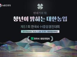 농촌진흥청은 한국4-에이치(H)중앙연합회와 공동으로 11월 5일~7일까지 전남 고흥종합문화회관 일원에서 ‘제51회 한국4-H 중앙경진대회’를 개최한다. ‘반세기의 땀, 청년이 밝히는 대한농업’을 주제로 5
