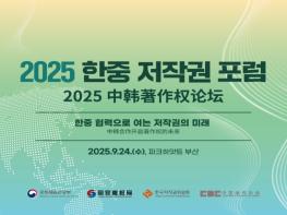 문화체육관광부는 한국저작권위원회, 중국 국가판권국과 함께 9월 24일, 파크하얏트 부산에서 ‘2025 한중 저작권 정부간회의(오전)’와 ‘2025 한중 저작권 포럼(오후)’을 열어 저작권 보호를 위한 양국