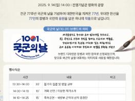 건군 77주년 국군의날 행사기획단은 9월 14일 오후 2시, 용산 전쟁기념관 평화의 광장에서 '국군의날 기념 대형 캘리그라피 제작 행사'를 개최한다고 밝혔다. 사전 홍보를 통해 선정된 국민, 장병 및 군무원