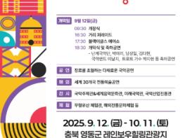 문화체육관광부가 지원하고 충청북도 영동군이 주최하는 대한민국 최초 국악 박람회인 ‘2025 영동세계국악엑스포’가 9월 12일부터 10월 11일까지 충북 영동군 레인보우힐링관광지와 국악체험촌 일원에서