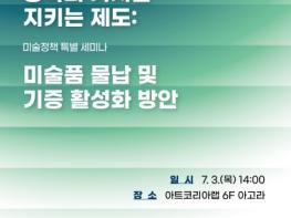 문화체육관광부는 (사)한국시각예술저작권연합회와 함께 7월 3일 오후 2시, 아트코리아랩 아고라(서울 종로구)에서 미술품 물납* 활성화를 위한 미술 정책 특별 세미나를 개최한다. 이번 세미나에서는 ‘창