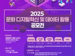 문화체육관광부는 한국문화정보원과 함께 문화 분야 디지털혁신과 문화데이터 활용을 촉진하기 위해 5월 14일부터 7월 7일까지 ‘2025 문화 디지털혁신 및 데이터 활용 공모전’을 개최한다. 문화 대표 전