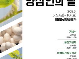 농림축산식품부는 5월 9일, 경기도 수원시에 위치한 국립농업박물관에서 제2회 ‘양잠인의 날’ 기념행사를 개최한다고 밝혔다. ‘양잠인의 날’은 전통 산업인 양잠의 역사적 가치와 기능성을 널리 알리고