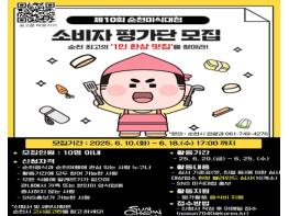 순천시는 정갈하고 품격 있는 순천의 맛을 알리기 위해 진행하는 ‘제10회 순천미식대첩’에 공정하고 객관적인 평가를 위해 ‘소비자 블라인드 평가단’을 모집한다고 밝혔다.이번 소비자평가단은 활동 기