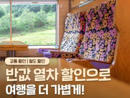 [교통 할인] 철도 할인◆ 반값 열차 할인으로 여행을 더 가볍게!서해금빛열차, 남도해양열차, 동해산타열차, 백두대간협곡열차, 정선아리랑열차 관광열차 5개 정기노선 50% 할인- 판매기간: 9.16.(화)~11.9.
