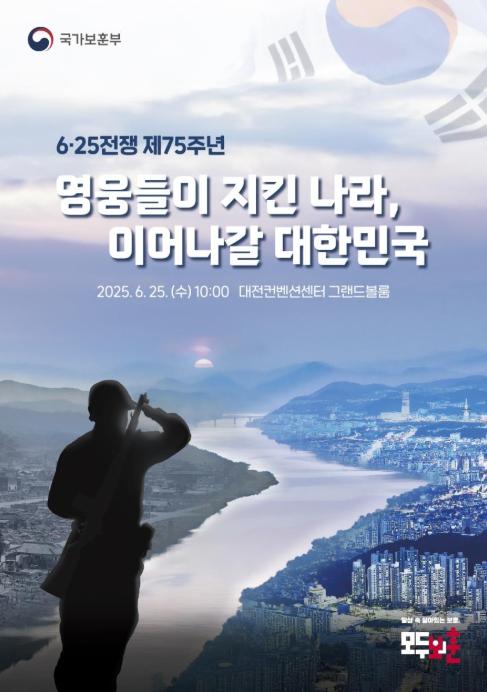 [한식일보] 국가보훈부는 6‧25참전유공자의 공헌을 기리고 자유의 소중함을 알려 국민의 안보 의식을 높이기 위한 ‘6‧25전쟁 제75주년 행사’를 25일 오전 10시, 대전 컨벤션센터(그랜드볼룸)에서 거행한다고 밝혔다.