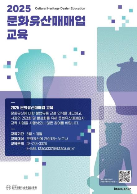 국가유산청은 2020년부터 매년 문화유산매매업 종사자들의 전문성과 책임 의식을 강화하여 문화유산의 불법 거래를 방지하고, 합법적이고 투명한 유통시장 환경 조성을 위해 '2025년도 문화유산매매업자 교육'을 운영해오고 있다. 교육 개설 전 수요조사를 통해 맞춤형 교육을 실시하고 있으며 문화유산매매업 창업을 준비 중인 예비 종사자, 문화유산 거래와 유통에 관심 있는 일반인에게도 교육 기회를 부여하여 우리 고미술품에 대한 관심을 확산하고 있다.