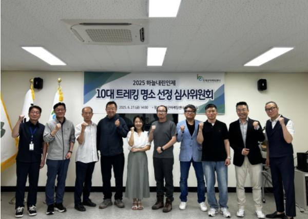 마케팅센터는 6월 27일 인제군마케팅센터 회의실에서 ‘2025 하늘내린인제 10대 트레킹 명소 선정위원회’를 열고 10대 명소 공식 선정을 마쳤다고 밝혔다.