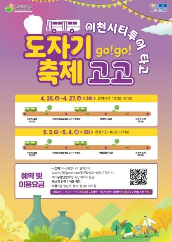 이번 시티투어는 축제 기간 중 주말에 맞춰 총 6회(▲4월 25일, 26일, 27일 ▲5월 2일, 3일, 4일) 진행되며 오전 10시 30분 이천역을 출발해 도자기 축제가 열리는 이천도자예술마을, 사기막골도예촌과 지역 관광지를 연계한 코스로 구성됐다.