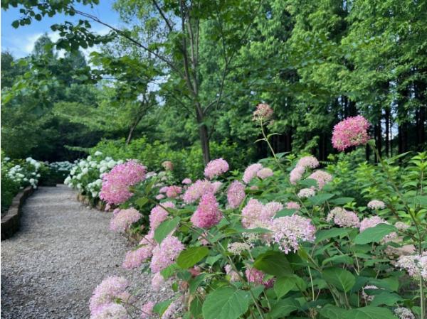 물향기수목원의 수국 주제원은 약 430㎡(130평) 규모로 조성되어 있으며, 특히 올해는 개화 상태가 우수해, 예년보다 훨씬 풍성하고 선명한 색감의 수국 군락을 만나볼 수 있다.