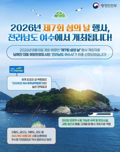 [한식일보] 2026년 8월 8일 개최 예정인 '제7회 섬의 날' 행사 개최지로 남해안 대표 해양관광도시인 '전라남도 여수시'가 최종 선정되었습니다!