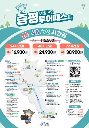 한편, 증평투어패스는 공식 홈페이지에서 24시간권 1만6900원, 48시간권 2만4900원, 72시간권 3만900원에 구매 가능하다.