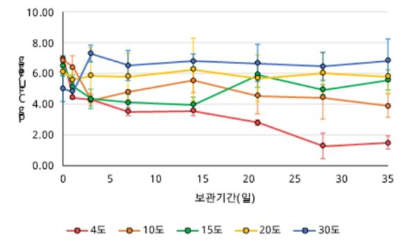 반면, 4도(냉장 온도)에서 보관한 달걀은 1일 차부터 살모넬라균이 99% 이상 급감, 35일 후까지 99.9% 이상 생장이 억제됐다.