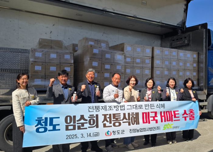 [한식일보] 청도군은 지난 14일 친정농업회사법인(주)에서 임순희 전통 식혜를 미국 대형 한인 마트 체인인 H-마트에 수출하기 위해 선적식을 가졌다.