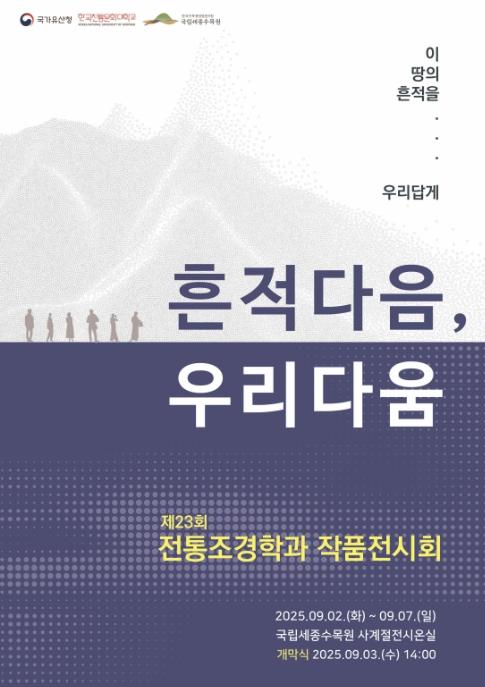 [한식일보] 국가유산청 한국전통문화대학교는 오는 9월 2일부터 7일까지 국립세종수목원 사계절전시온실에서 ‘흔적다음, 우리다움’을 주제로 '제23회 전통조경학과 작품전시회'를 개최한다.