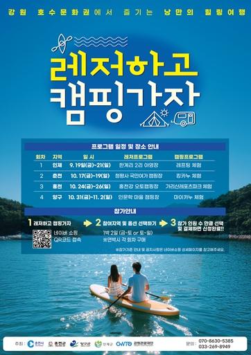 [한식일보] 강원관광재단과 호수문화관광권역은 오는 9월부터 11월까지 ‘레저하고 캠핑가자’ 프로그램을 운영한다.