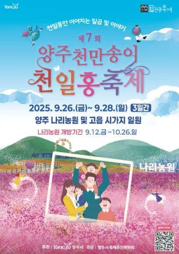 특히 ‘양주 천만송이 천일홍 축제’는 2025년 경기대표관광축제에 선정된 행사로 전국 최대 규모의 천일홍 군락지에서 보랏빛 꽃물결이 끝없이 이어지는 장관을 감상할 수 있다.