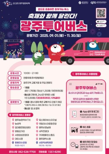 이승규 신활력추진본부장은 “광주투어버스가 지역 축제와 행사장을 잇는 새로운 교통기반시설로 자리매김할 수 있도록 지속 개선해 나가겠다”며 “앞으로도 관광객이 쉽고 편리하게 광주를 즐길 수 있도록 다양한 서비스를 발굴하겠다”고 말했다.
