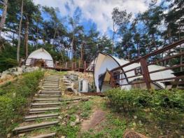 숙박시설로는 숲속의 집 15동과 글램핑장 5동이 있으며, ‘마음소리 방’, ‘치유의 방’ 등 각각의 이름처럼 테마가 담긴 공간으로 꾸며져 있다.