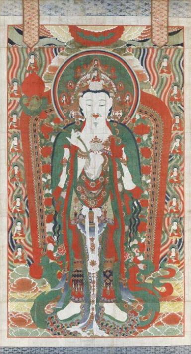 '부여 무량사 미륵불 괘불도(扶餘 無量寺 彌勒佛 掛佛圖)'의 국보 지정은 1997년 7점의 괘불이 동시에 국보로 지정된 이후 약 30년 만에 새롭게 나온 국보 괘불이라는 점에서 의미가 크다. 이 괘불도는 길이가 약 14m에 달하는 초대형 규모로, 머리에 화려한 보관을 쓰고 신체를 아름답게 장식한 모습의 보살형 입상으로 표현됐는데, 이러한 장엄신 괘불의 시작점을 연 작품이라는 점에서 미술사적으로 중요하다. 초대형 작품임에도 불구하고 균형 잡힌 자세와 비례, 적·녹의 강렬한 색채 대비, 밝고 온화한 중간 색조의 조화로운 사용으로 종교화의 숭고함과 장엄함을 효과적으로 구현했다.