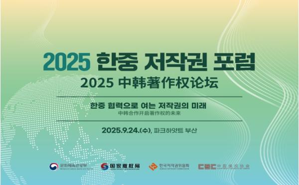 [한식일보] 문화체육관광부는 한국저작권위원회, 중국 국가판권국과 함께 9월 24일, 파크하얏트 부산에서 ‘2025 한중 저작권 정부간회의(오전)’와 ‘2025 한중 저작권 포럼(오후)’을 열어 저작권 보호를 위한 양국 협력 방안과 인공지능(AI), 블록체인 등 기술 발전에 따른 저작권 정책 변화 및 대응을 논의한다.