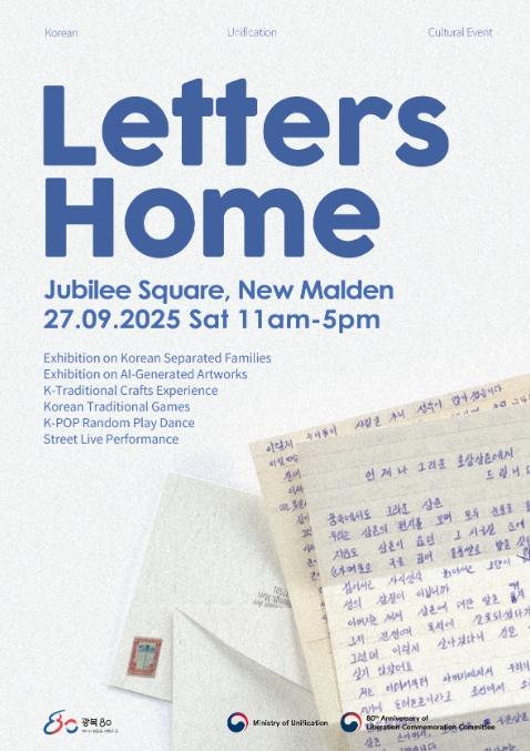 [한식일보] 통일부는 9월 27일, 영국 최대 한인 밀집 지역인 뉴몰든에서 ‘Letters Home’(집으로 보내는 편지)을 주제로 한 재외동포 통일문화행사를 개최한다.