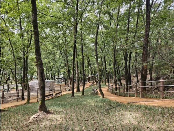 2억원의 예산을 활용해 참나무숲 아래 140m 길이의 맨발산책길과 황토볼 체험장 등을 설치했다. 또 부대시설로 세족시설, 신발장, 황토보관함, 휴게의자를 마련해 시민 편의성을 높였다.
