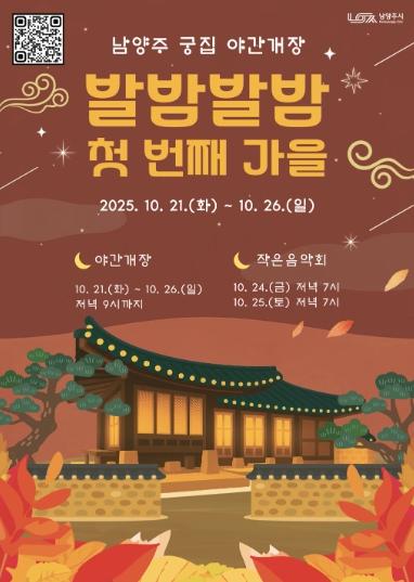 시 관계자는 “남양주 궁집은 고즈넉한 전통 건축미와 정취를 간직한 공간으로 이번 행사를 통해 관람객이 특별한 가을밤의 감성을 느낄 수 있을 것이라 기대한다”며 “앞으로도 남양주 궁집이 도심 속의 힐링 명소로 활용될 수 있도록 다양한 프로그램을 진행하겠다”고 말했다.