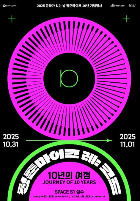 [한식일보] 문화체육관광부는 지역문화진흥원과 함께 10월 31일부터 11월 1일까지 복합문화공간 ‘스페이스 에스원(SPACE S1, 서울 성동구)’에서 ‘문화가 있는 날 청춘마이크’ 10주년 기념행사 ‘청춘마이크 레:코드-10년의 여정’을 개최한다.