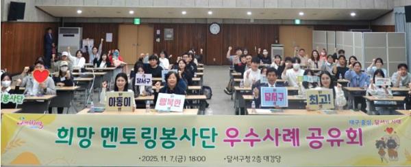 [한식일보] 대구 달서구는 지난 7일 구청에서 멘토링봉사단 멘토와 멘티를 초청해 '희망 멘토링봉사단 우수사례 공유회'를 개최했다.