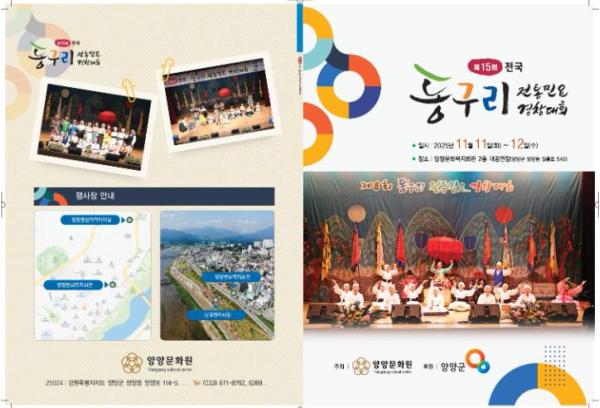 [한식일보] ‘제15회 전국 동구리 전통민요 경창대회’가 오는 11월 11일부터 12일까지 이틀간 양양문화복지회관 2층 대공연장에서 열린다.