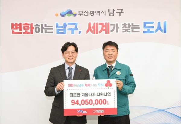 부산사회복지공동모금회(회장 이수태)는 지난 11월 10일, 부산 남구청에서 '따뜻한 겨울나기 지원금' 전달식을 가졌다.